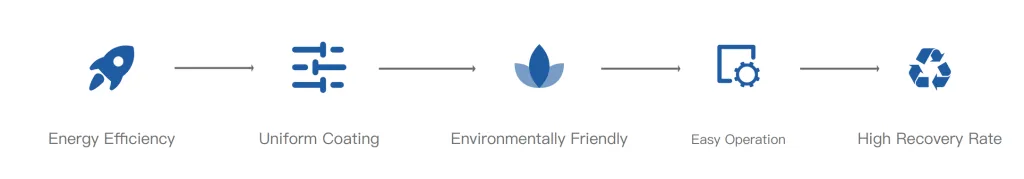 Designed for high-speed production, this system allows you to change color in just 10–15 minutes. By utilizing high-efficiency filters to capture overspray, it ensures clean air emissions and maintains a safe, compliant working environment. This combination of speed and recovery makes it the most cost-effective choice for modern coating plants.