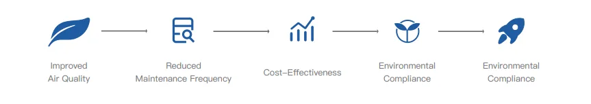 Recycling Process: After being filtered by the filter element made of filter materials such as parchment paper, the powder is trapped in the room, and the air is discharged to the outside through the filter element. In this way, when the filter element is back-blown with compressed air at a fixed time, the powder on the surface of the filter element falls into the collection box at the bottom of the room and can be recycled and reused.